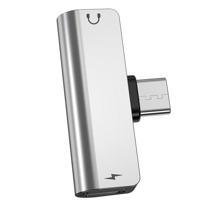 Adapteris Hoco LS26 iš Type-C į Type-C + 3,5mm sidabro spalvos