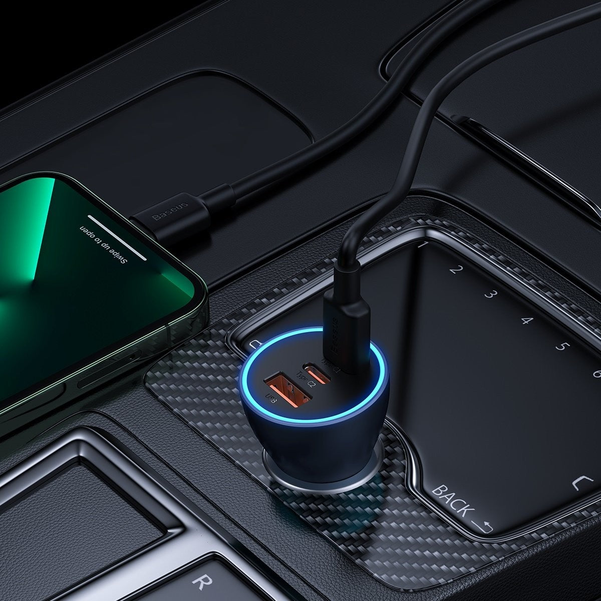 Automobilinis įkroviklis Baseus Golden Contactor Pro 65W 2xType-C/USB-A pilkas CGJP010013
