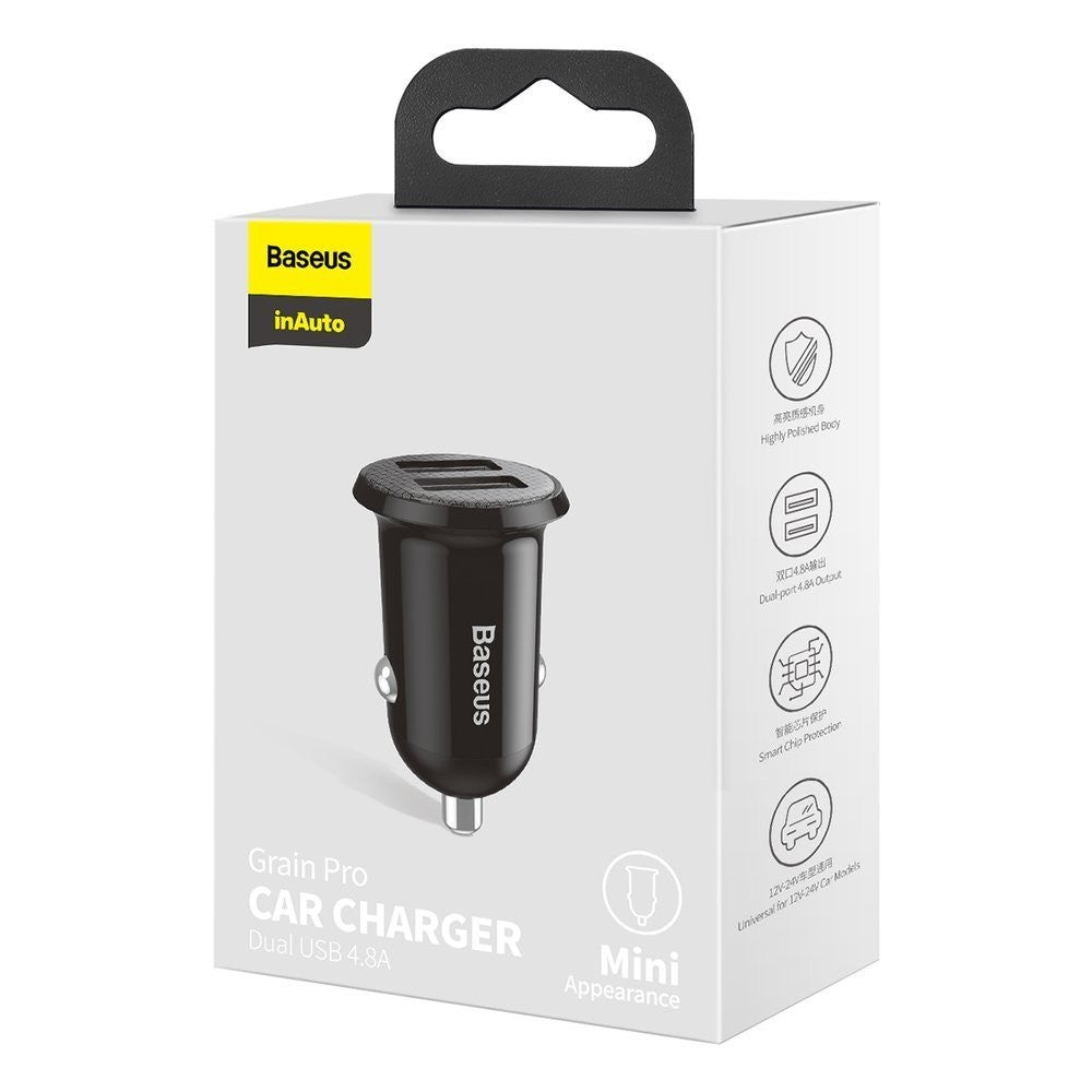Automobilinis įkroviklis Baseus Grain Pro 2xUSB-A 4.8A juodas CCALLP-01