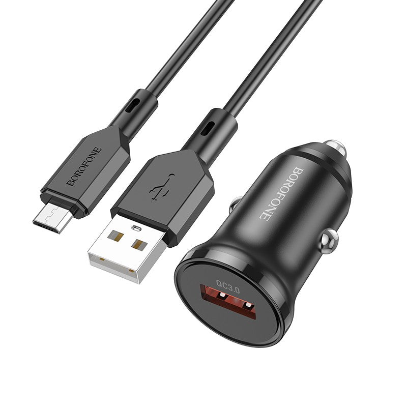 Automobilinis įkroviklis Borofone BZ18 Quick Charge 3.0 18W + MicroUSB juodas