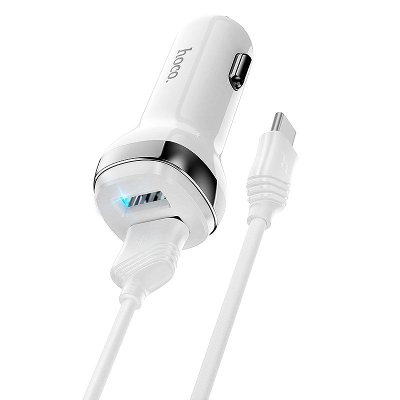 Automobilinis įkroviklis Hoco Z40 Superior Dual Port + Type-C baltas