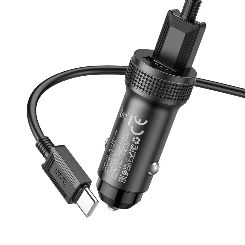 Automobilinis įkroviklis Hoco Z49 2xUSB-A + Type-C juodas
