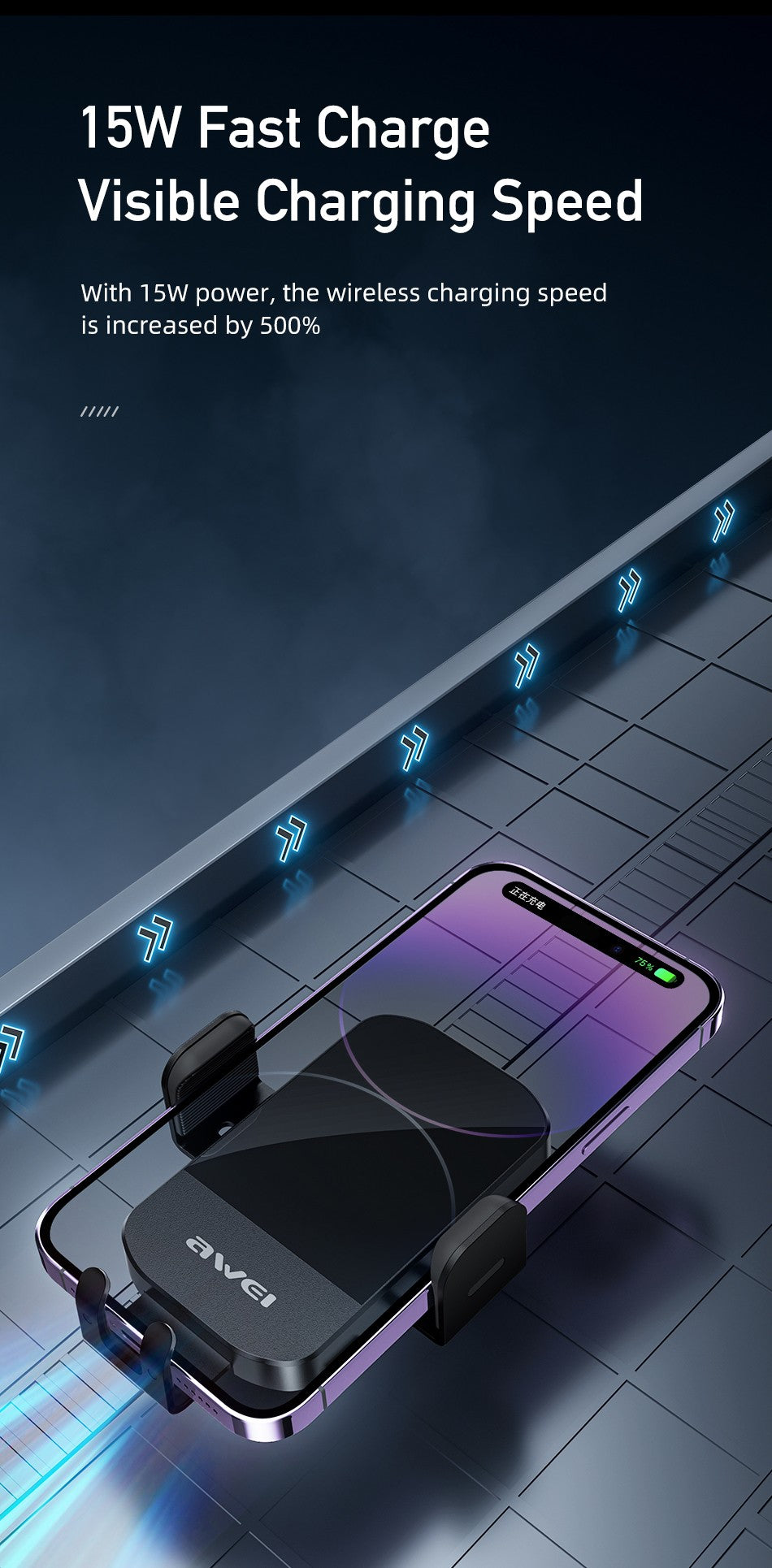 Automobilinis laikiklis-įkroviklis Awei X43 15W juodas