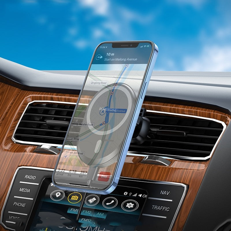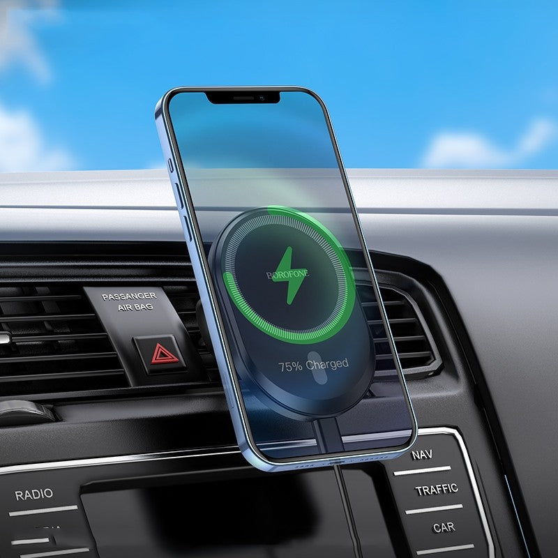 Automobilinis laikiklis-įkroviklis Borofone BH201 Magsafe 15W magnetinis, juodas