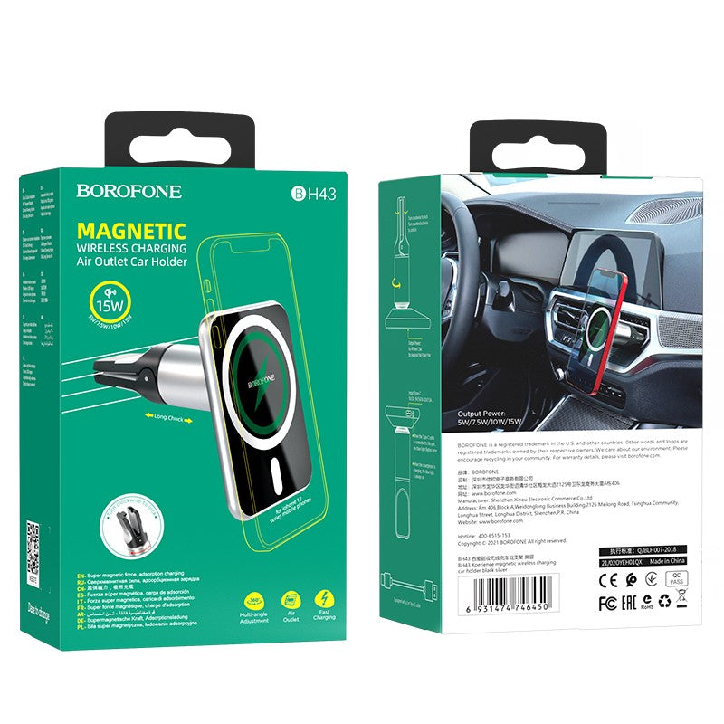 Automobilinis laikiklis-įkroviklis Borofone BH43 Xperience Magsafe 15W magnetinis, juodas