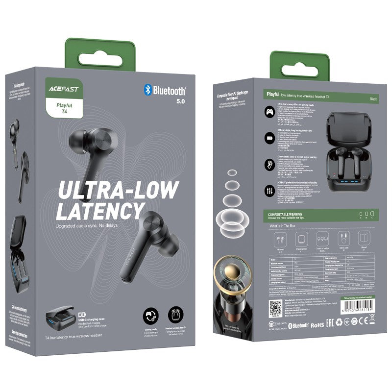 Belaidės ausinės Acefast T4 Low-Latency TWS juodos