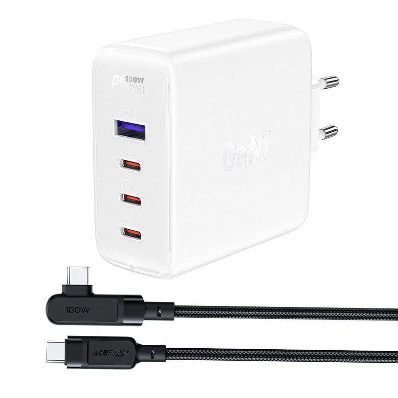 Įkroviklis Acefast A37 100W GaN 3xUSB-C/1xUSB-A baltas