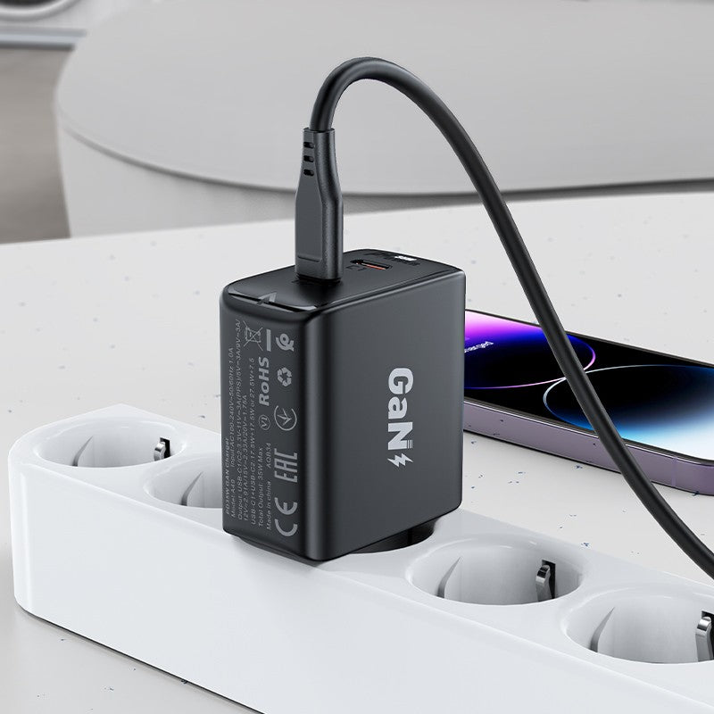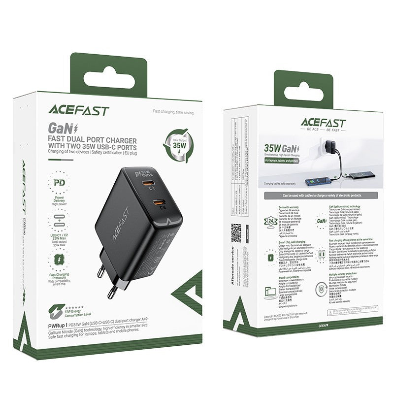 Įkroviklis Acefast A49 35W GaN 2xUSB-C juodas