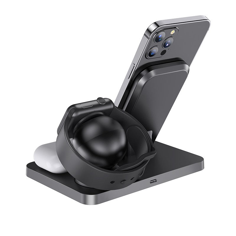 Įkroviklis belaidis Hoco CW33 Ultra-Charge 3-in-1 juodas