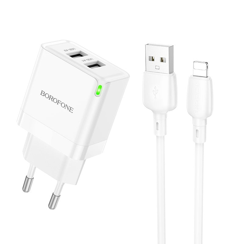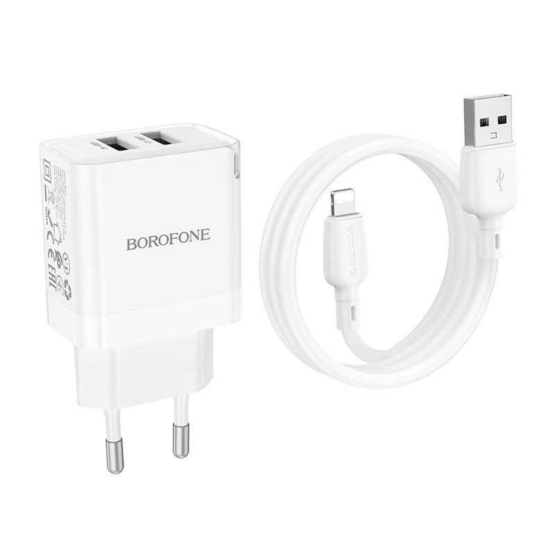 Įkroviklis Borofone BN15 2xUSB-A + USB-A to Lightning cable 1.0m baltas