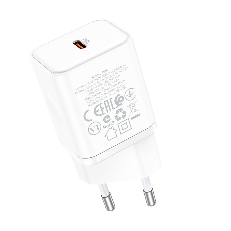 Įkroviklis Borofone BN6 Type-C PD+QC3.0 20W, baltas