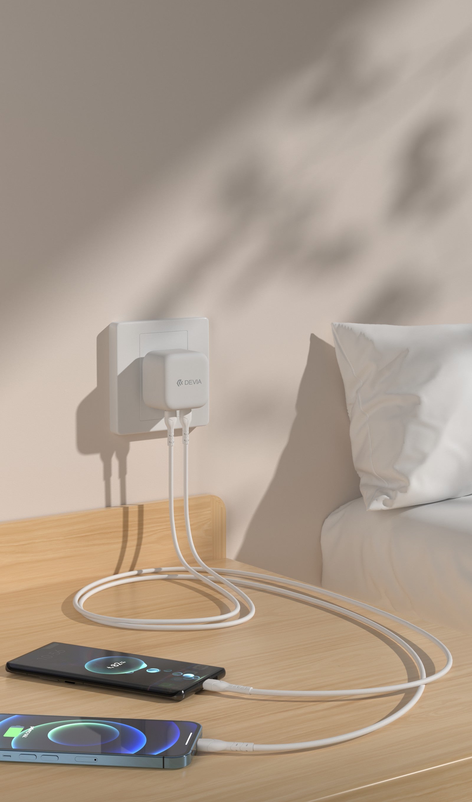 Įkroviklis Devia Extreme Speed GaN PD+QC 2xType-C 45W baltas
