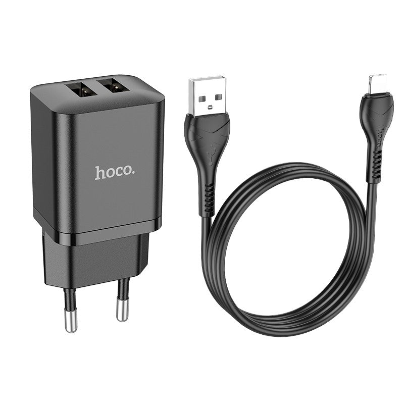 Įkroviklis Hoco N25 2xUSB-A (2.1A) + Lightning juodas