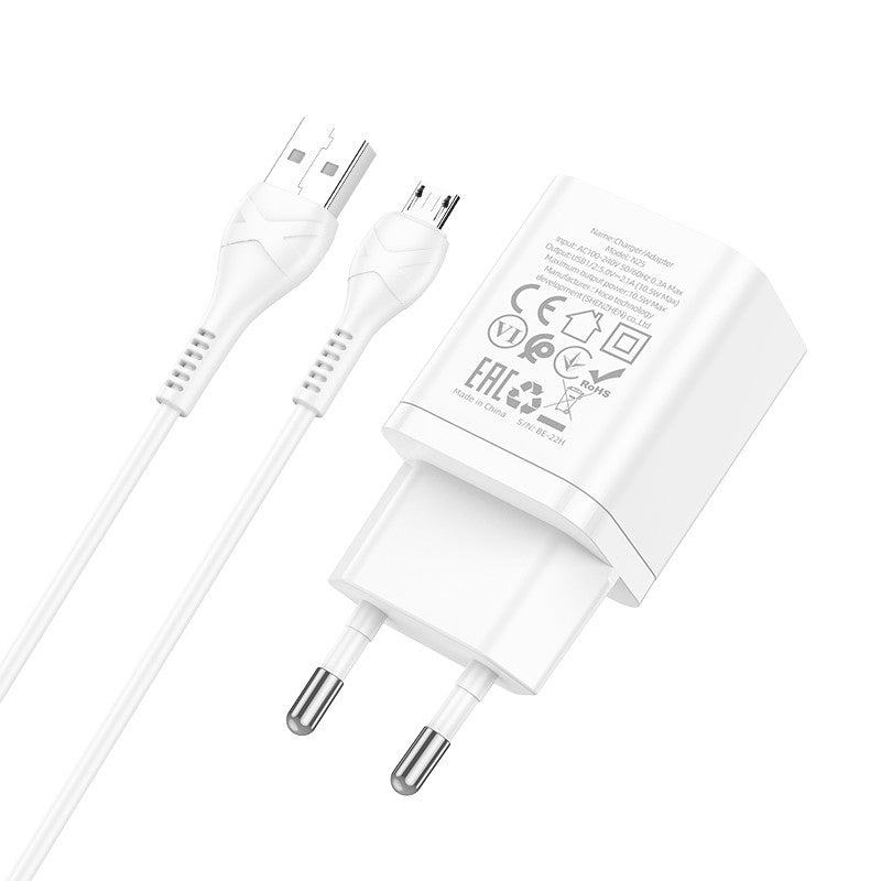Įkroviklis Hoco N25 2xUSB-A (2.1A) + MicroUSB baltas