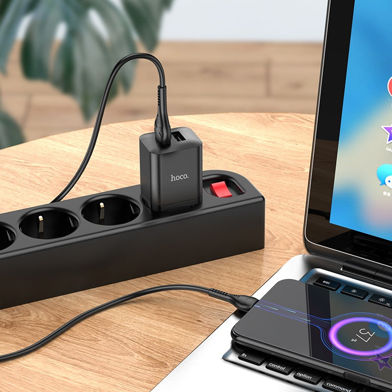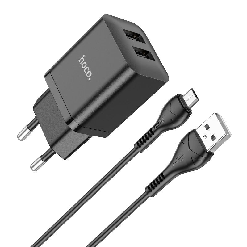 Įkroviklis Hoco N25 2xUSB-A (2.1A) + MicroUSB juodas