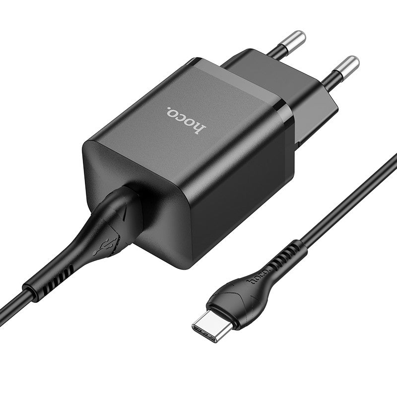 Įkroviklis Hoco N26 18W USB-A + USB-A to USB-C cable 1.0m juodas