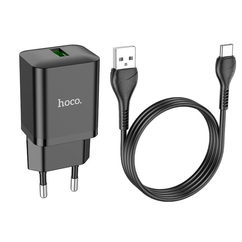 Įkroviklis Hoco N26 USB-A Quick Charge 3.0 18W + Type-C juodas