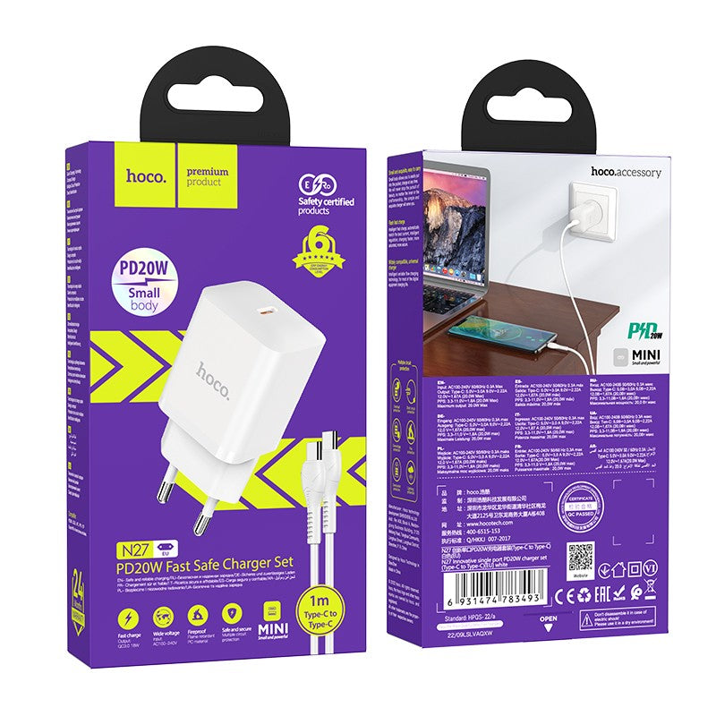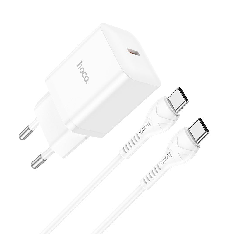 Įkroviklis Hoco N27 20W USB-C + USB-C to USB-C cable 1.0m baltas