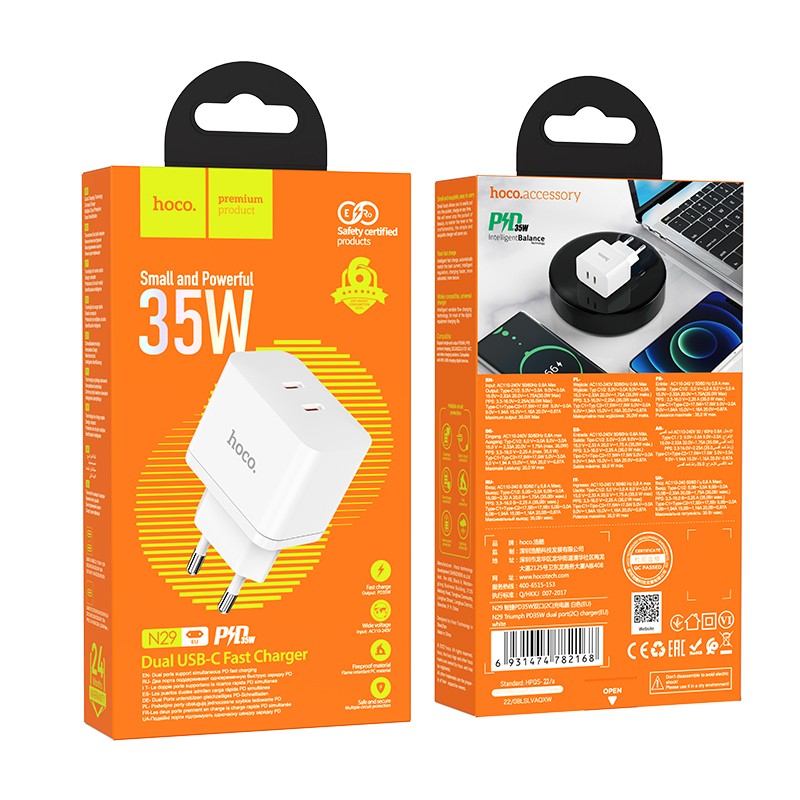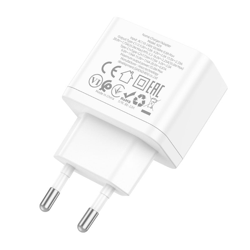Įkroviklis Hoco N29 35W 2xUSB-C baltas
