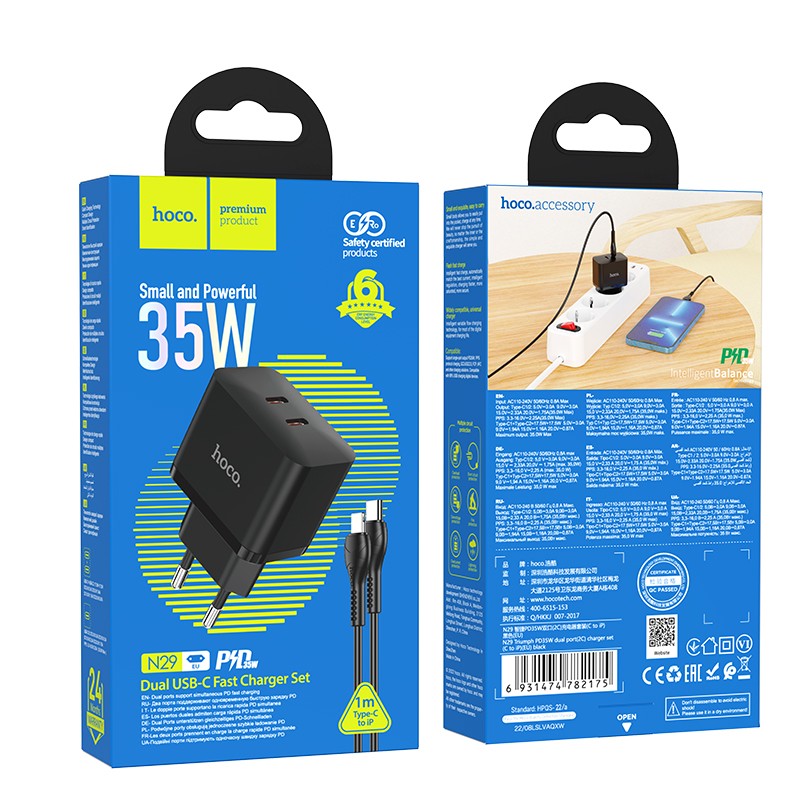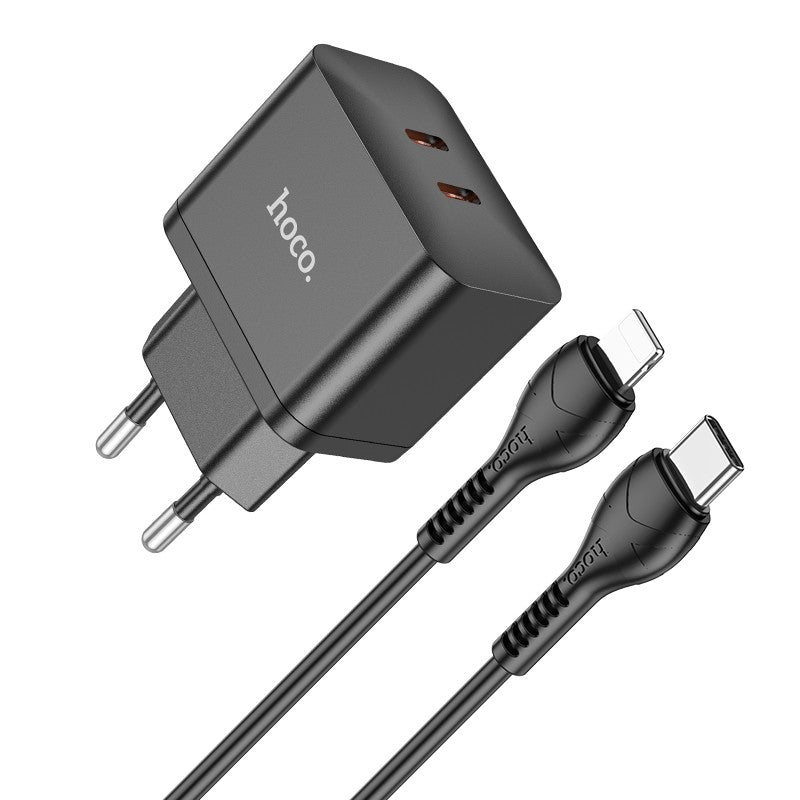 Įkroviklis Hoco N29 35W 2xUSB-C + USB-C to Lightning cable 1.0m juodas