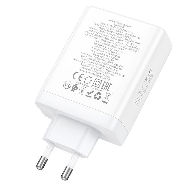 Įkroviklis Hoco N31 PD100W 3xType-C/1xUSB-A baltas