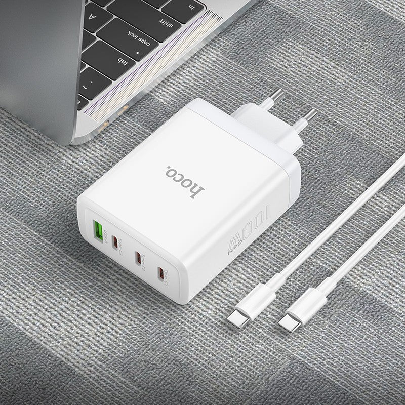 Įkroviklis Hoco N31 PD100W 3xType-C/1xUSB-A + Type-C baltas