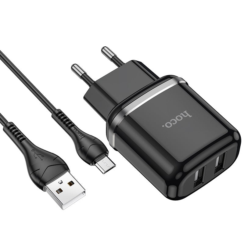 Įkroviklis Hoco N4 12W 2xUSB-A + USB-A to MicroUSB cable 1.0m juodas