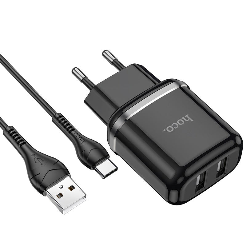 Įkroviklis Hoco N4 12W 2xUSB-A + USB-A to USB-C cable 1.0m juodas