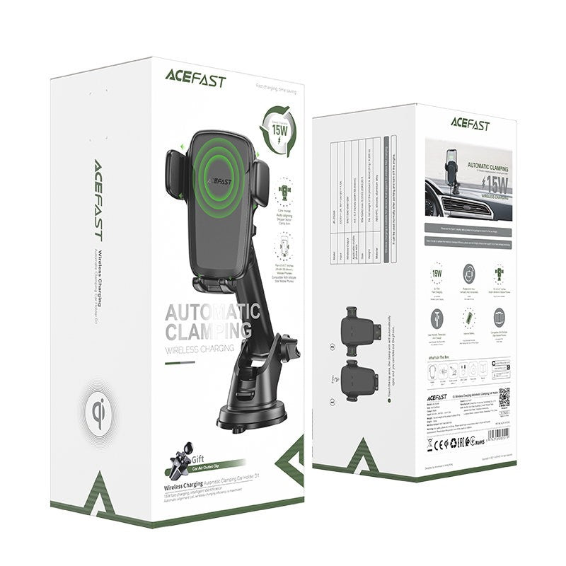 Įkroviklis-laikiklis automobilinis Acefast D1 15W juodas