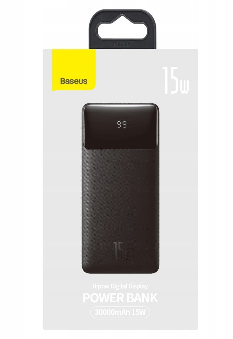 Išorinė baterija Power Bank Baseus Bipow Type-C PD+2xQuick Charge 3.0 15W 30000mAh su ekranu juoda PPBD050201