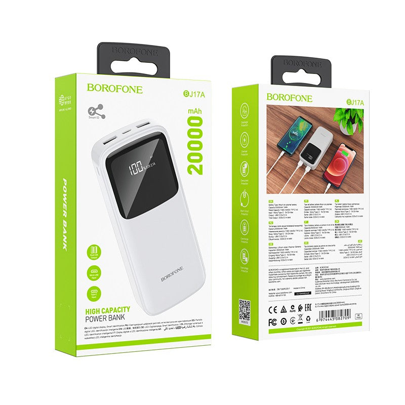 Išorinė baterija Power Bank Borofone BJ17A Type-C microUSB 2*USB (2.1A) 20000mAh juoda