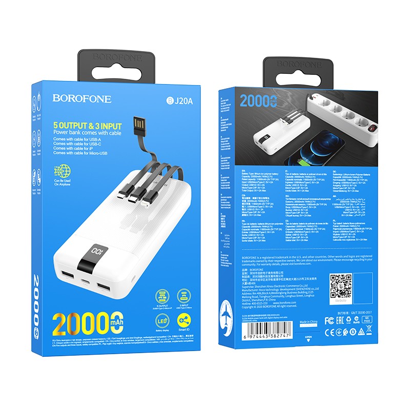 Išorinė baterija Power Bank Borofone BJ20A 5 Output 3 Input 20000mAh balta