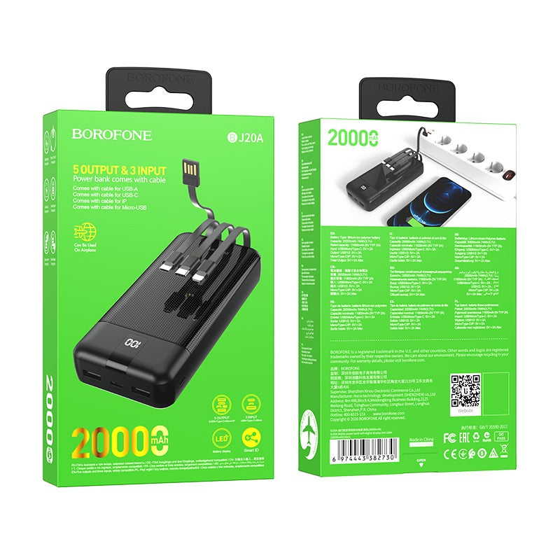 Išorinė baterija Power Bank Borofone BJ20A 5 Output 3 Input 20000mAh juoda
