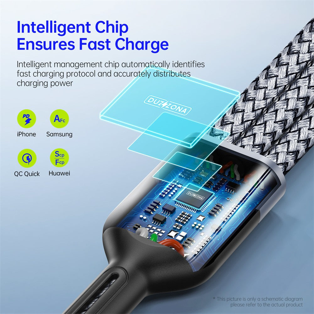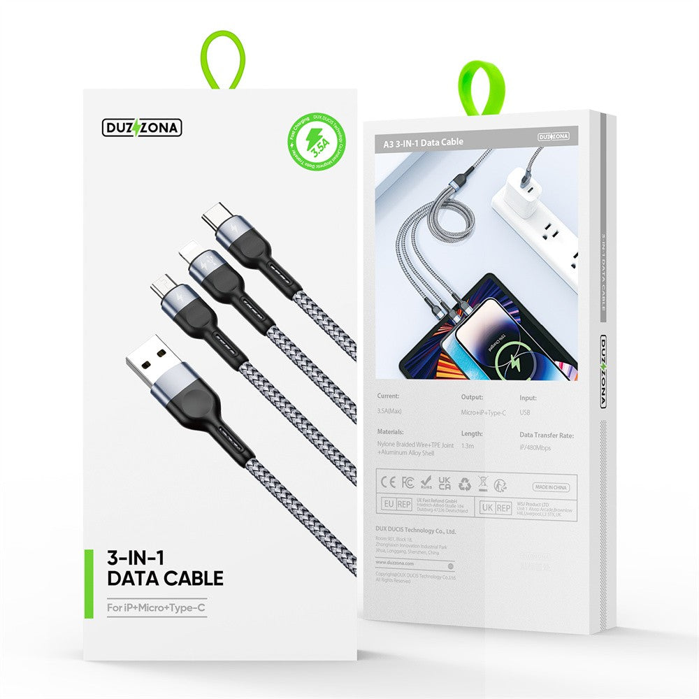 USB kabelis DUZZONA A3 3in1 microUSB-Lightning-Type-C 1.2m pilkas