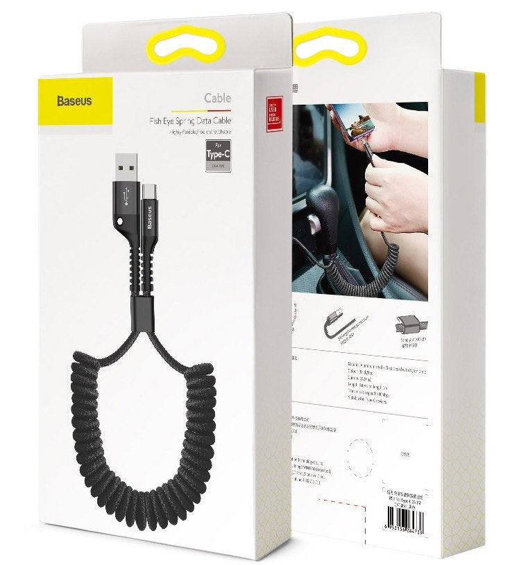 USB kabelis Fish Eye Spring Type-C 2.0A 1m juodas CATSR-01
