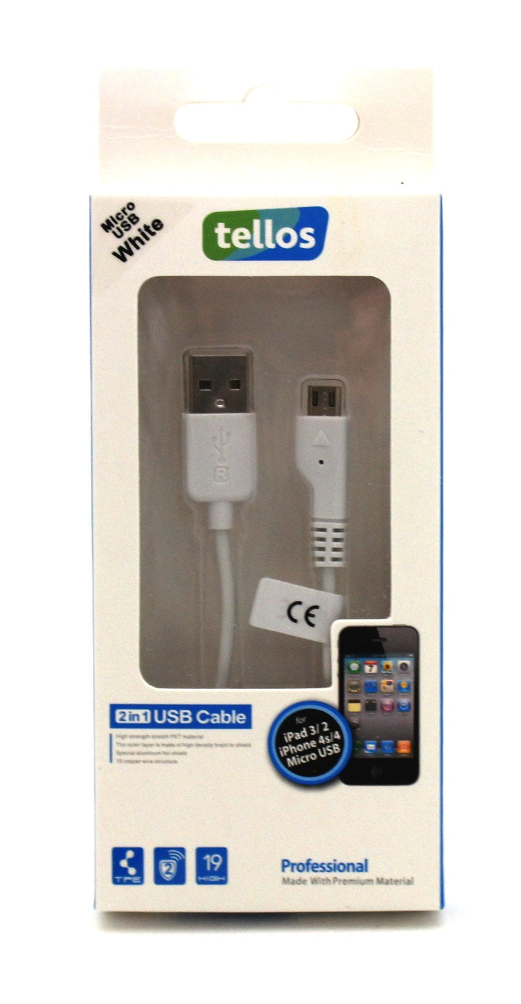 USB kabelis Tellos Professional microUSB FastCharging baltas, 0.8m