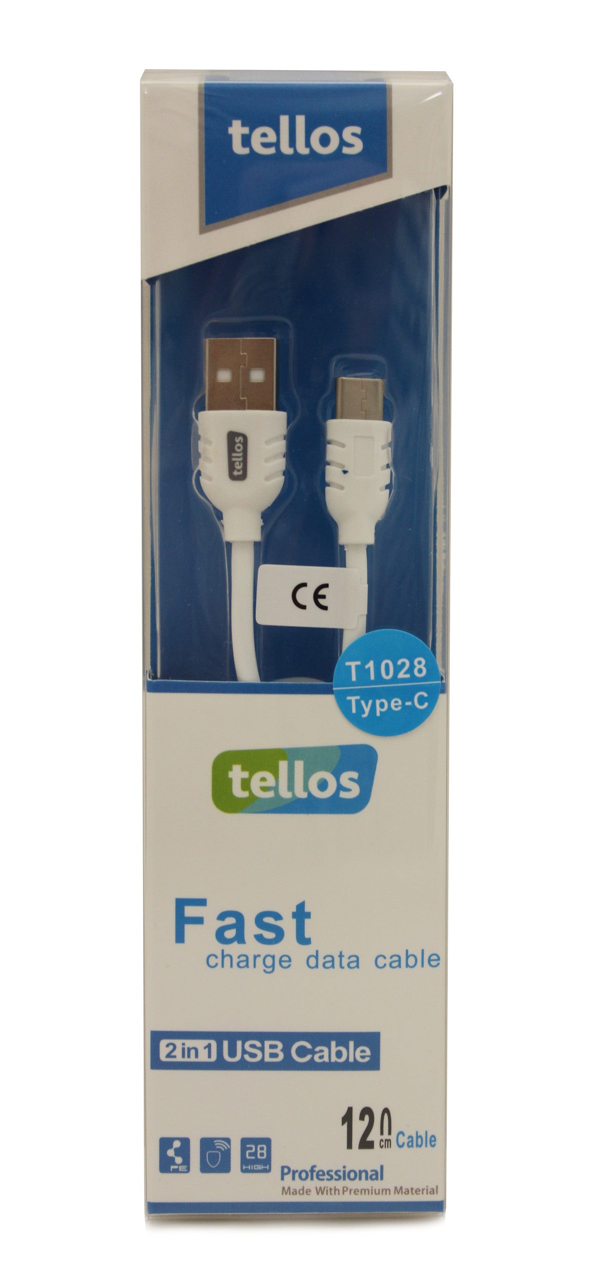 USB kabelis Tellos Type-C FastCharging baltas, 1.2m