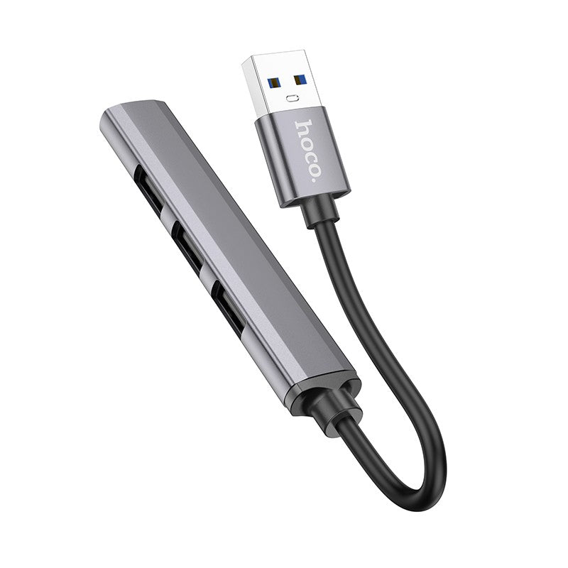 USB šakotuvas Hoco HB26 4-in-1 adapter USB-A to 1xUSB3.0 + 3xUSB2.0 pilkas
